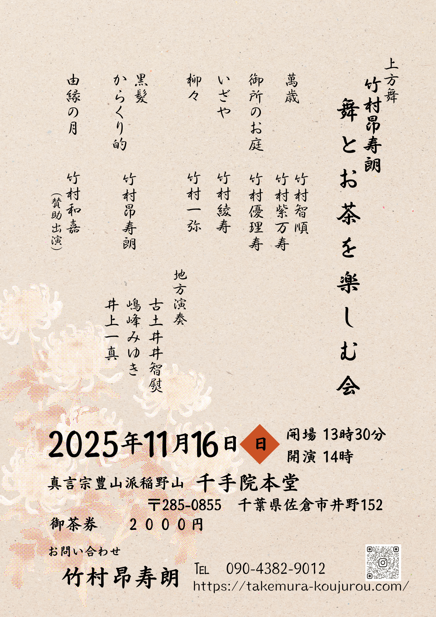 吉村昂扇師「上方舞 竹村流」創流により、竹村昂寿朗に改名。
